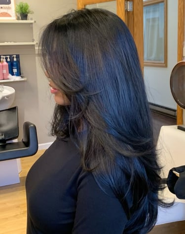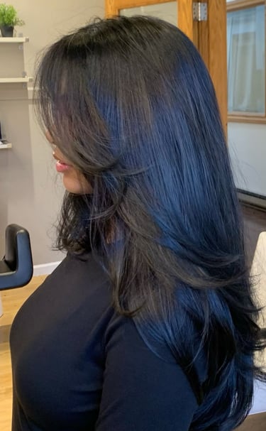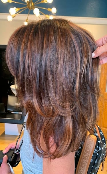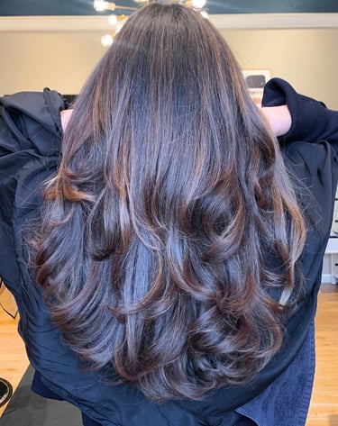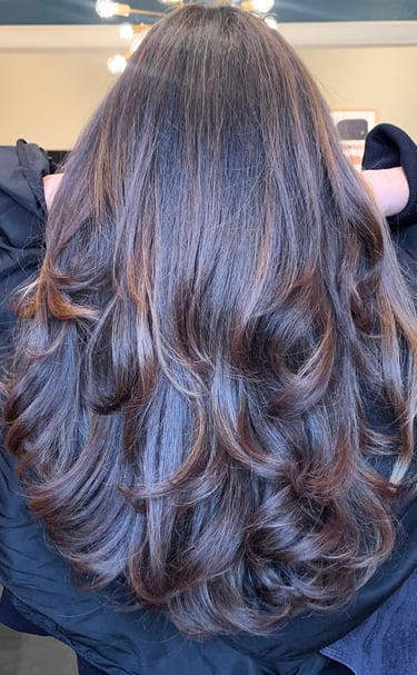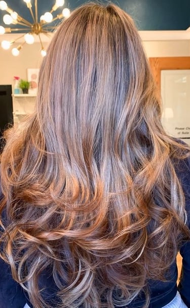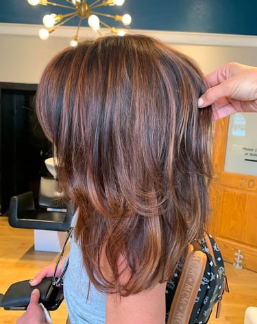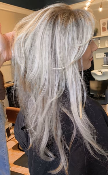 Explore my portfolio showcasing beautiful highlights and other hair transformations.